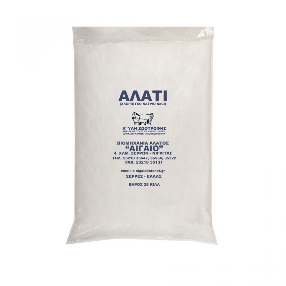 Φυσικό θαλασσινό αλάτι υψηλής καθαρότητας, ειδικά επεξεργασμένο για χρήση ως πρώτη ύλη στη βιομηχανία ζωοτροφών. Η σταθερή ποιότητα, η καθαρότητα και η απουσία υγρασίας το καθιστούν ιδανικό συστατικό για μίγματα και συμπληρώματα ζωοτροφών.